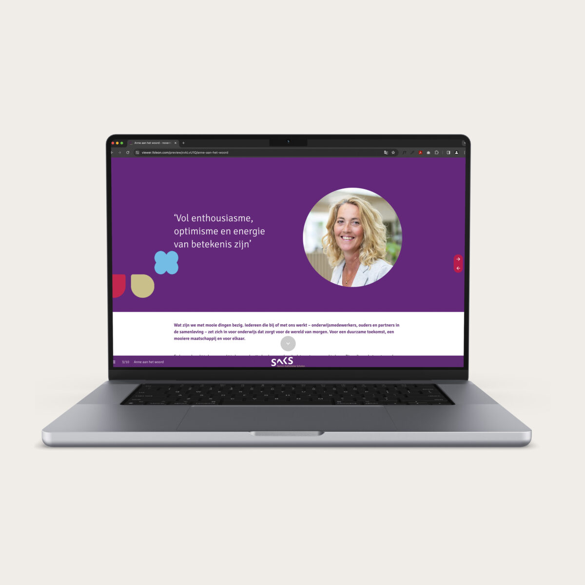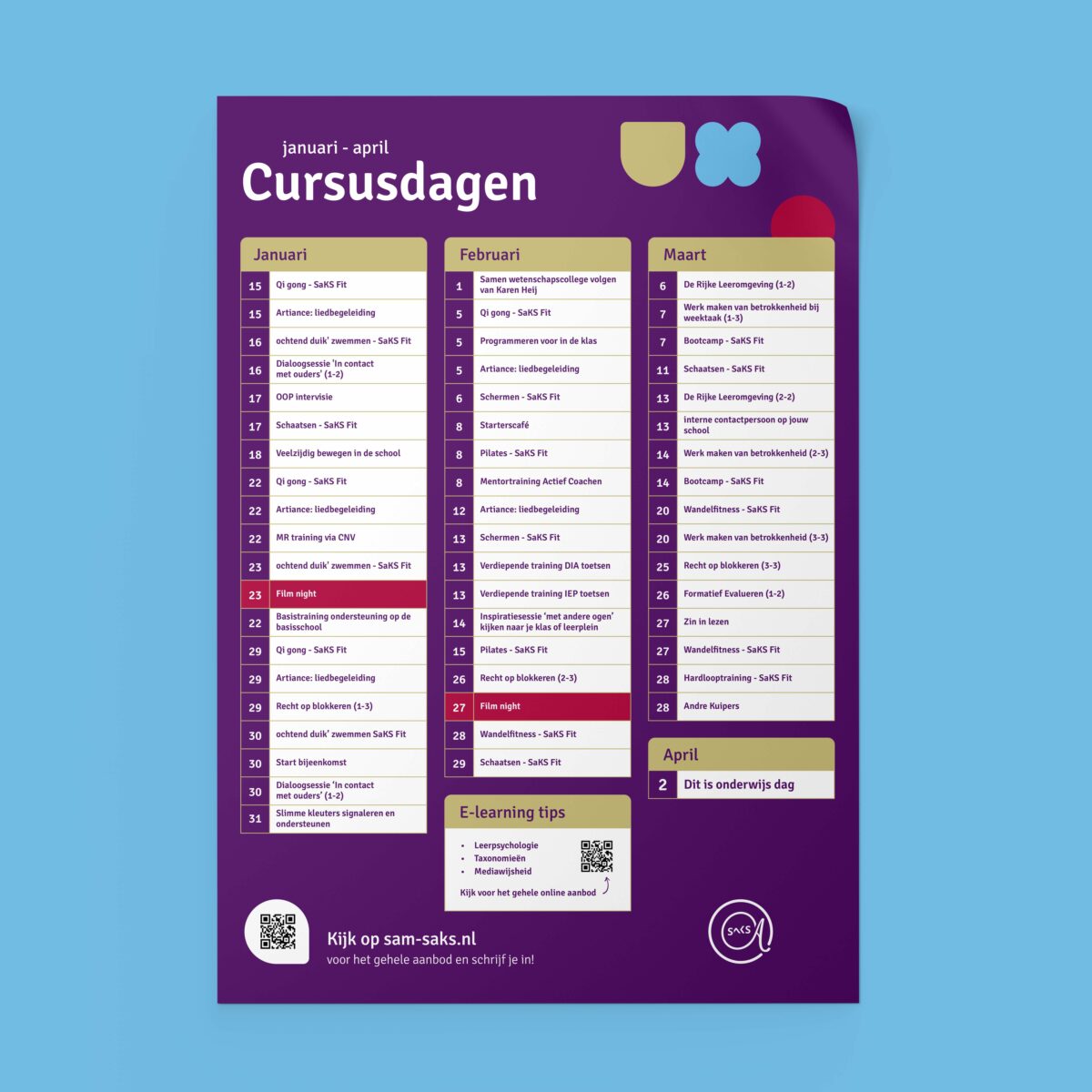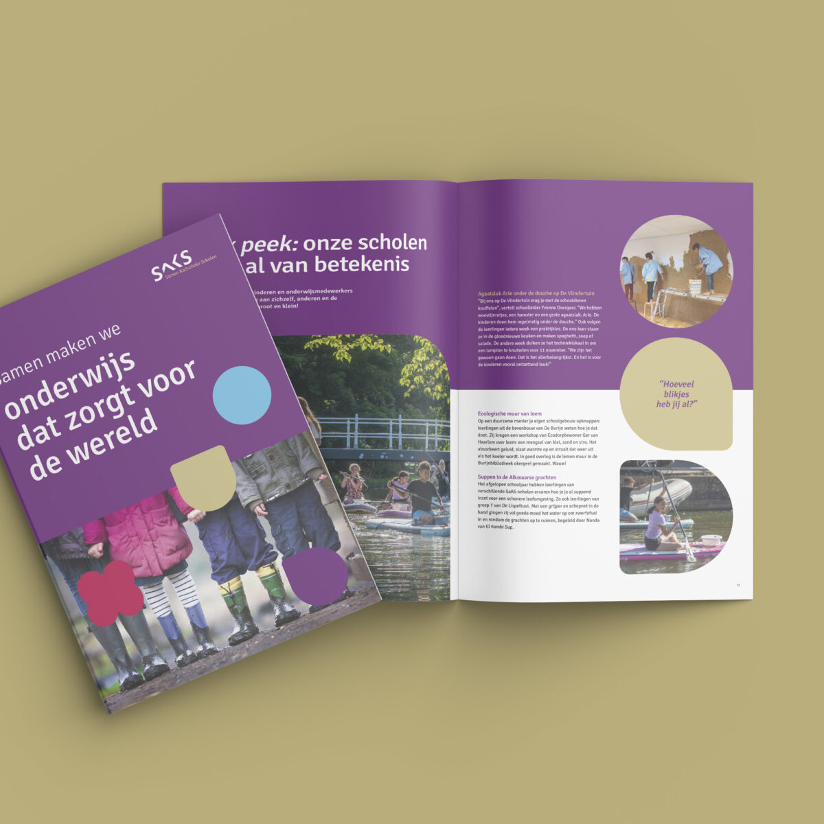 De samenwerking ontstond bij de behoefte om het merk van SaKS een stevige update te geven. Wij mochten de nieuwe branding vormgeven. Later werden we gevraagd om over de rol van communicatie na te denken bij de ontwikkeling van het Strategische Beleidsplan. Uitgangspunt: ‘Groots denken, klein organiseren. Om dit tastbaar te maken, ontwikkelden wij het submerk ‘SaKS 2020’: iedereen moet in beweging komen, vragen stellen, nieuwe dingen proberen. Een paraplu voor alle activiteiten die met deze beweging te maken had: brieven aan ouders, posters, animaties, online magazines, social media content, etc.